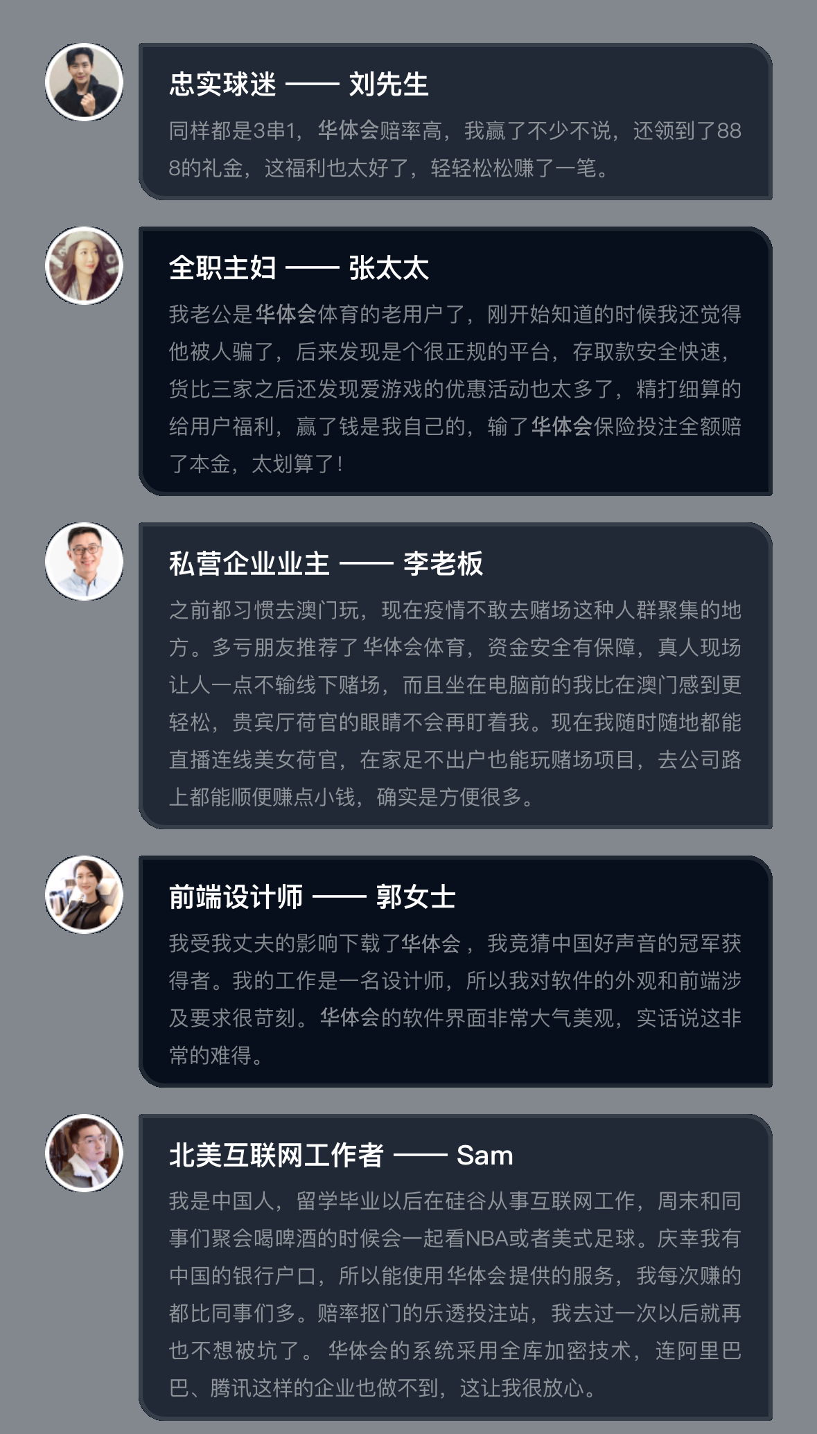 作为亚洲最大持有合法牌照的投注平台、全球领先的娱乐服务供应商、华人第一品牌,我们有超过6,800,000平台会员。您一定从身边的朋友那里听说过华体会,朋友的口碑一定比文字更加能说服您。